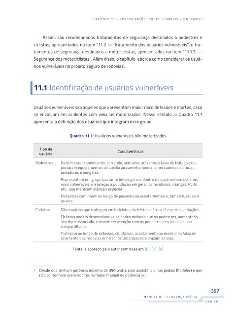 Quadro 11.1: Usuários vulneráveis não motorizados