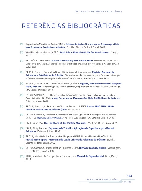 (AASHTO). Highway Safety Manual. 1ª edição. Washington, DC, Estados Unidos, 2010